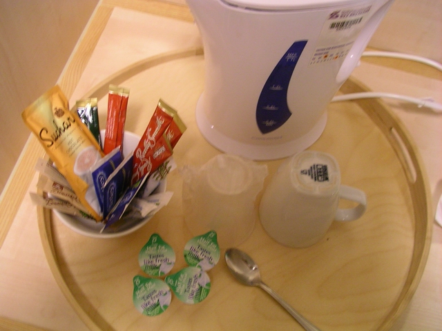 宿舎の部屋は快適 で、お茶やクッキー までサービス |