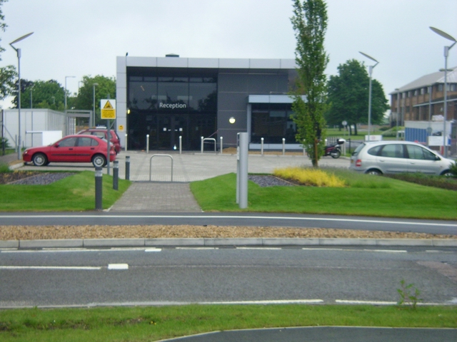 ゲートです。歩行者は 左側の回転ドアから入ります。 臨時入構証は中央で貰います。 |